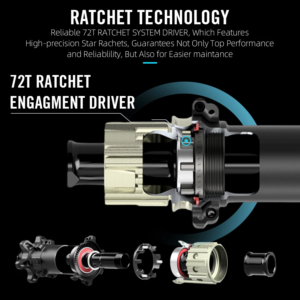 Designed with a 72-tooth ratchet mechanism, these hubs provide near-instantaneous engagement. Every pedal stroke translates to seamless power transfer, giving you a decisive edge on steep inclines, sharp corners, and sprints. With this level of precision engagement, navigating technical terrain becomes effortless, while your pedaling efficiency increases significantly. Whether conquering rocky trails or aggressively climbing switchbacks, the Ryet MTB Hubs ensure you stay in complete control every step of the way.
