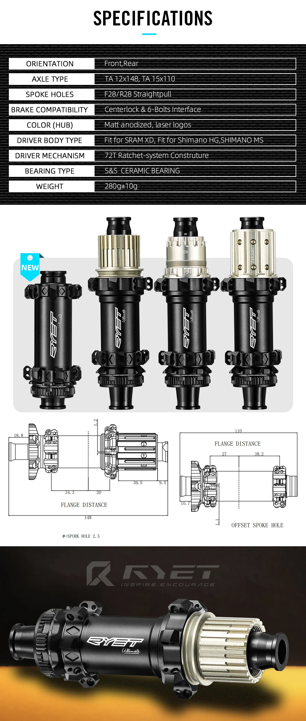 The Ryet MTB Super Light 280g 72T Ratchet Hubs set a new standard in mountain bike performance. Engineered to weigh just 280 grams, these hubs dramatically decrease rotational weight, allowing for quicker acceleration and unmatched agility on climbs and descents. Their innovative construction delivers unparalleled strength despite their lightness, making them the ultimate choice for riders who demand speed, stamina, and reliability in every ride. Whether tackling technical trails or long-distance races, these hubs equip you for superior performance.