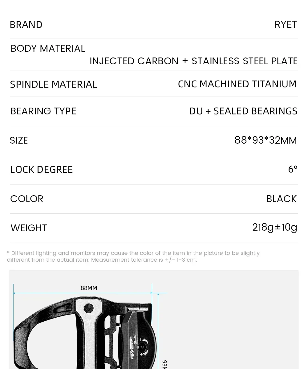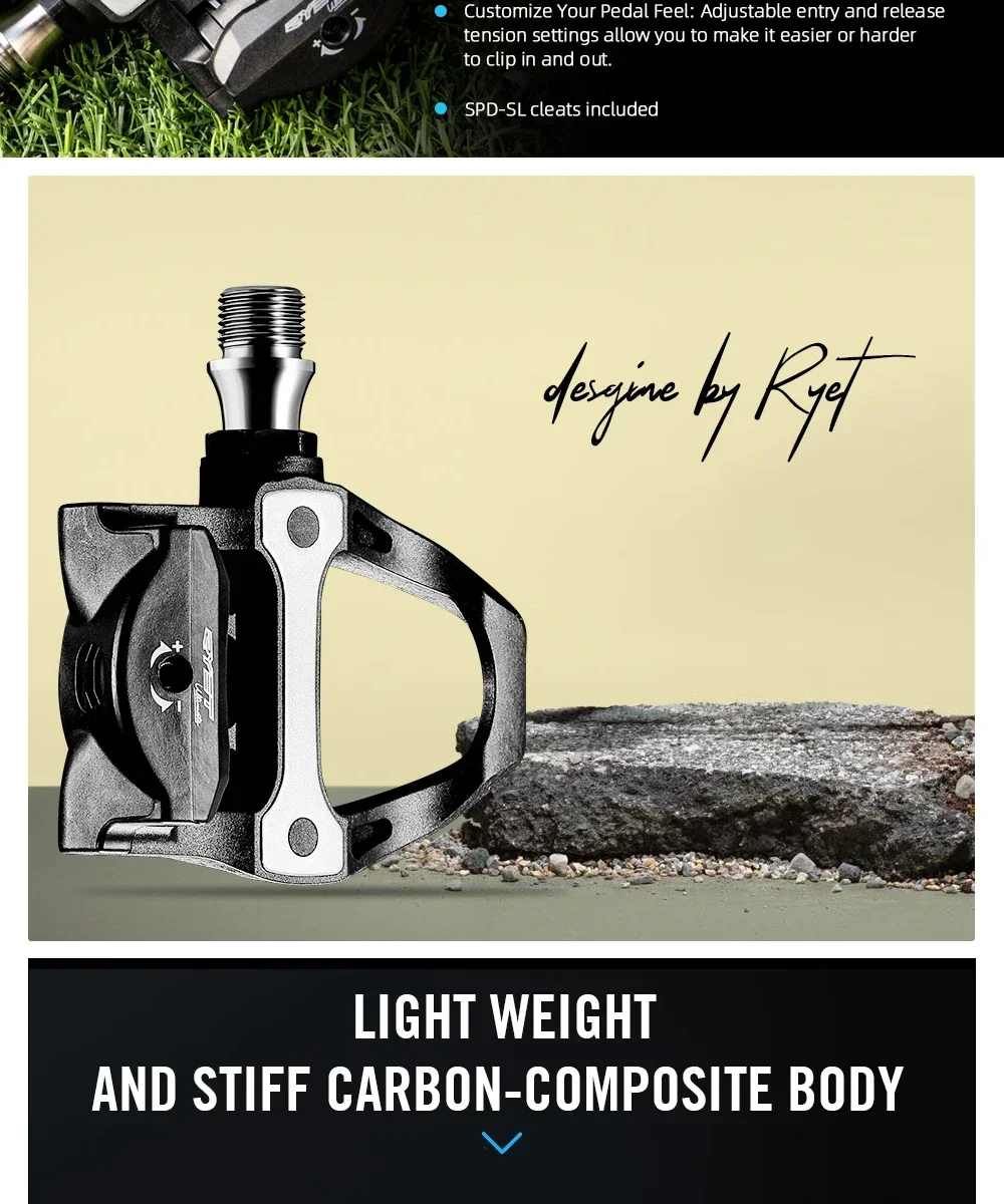 The sleek design of the RYET P-601S pedal accents any road bike with a modern, professional aesthetic. Its combination of innovative engineering and a visually appealing structure reflects sophistication while delivering high-level functionality. Whether commuting through city streets or conquering rural descents, this pedal isn’t just a piece of equipment—it’s an accessory that enhances your entire cycling experience. Embrace unparalleled quality and elevate your road cycling setup today.