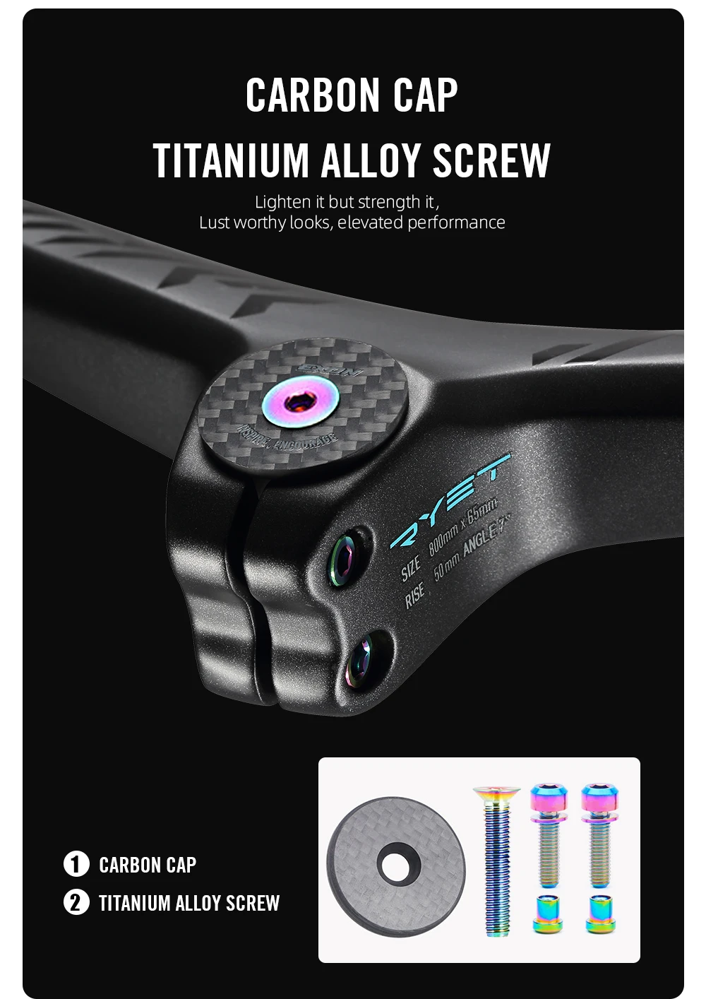 To ensure secure handling, the RYET MTB Integrated Handlebar includes additional sanding in the grip and lever areas. This feature minimizes clamping forces, reducing the risk of component failures. The inclusion of titanium locking bolts and a titanium top cap eliminates concerns regarding durability, providing solid, reliable support. Every detail works together to enhance your confidence on challenging trails.