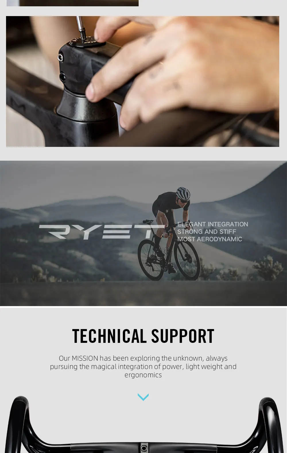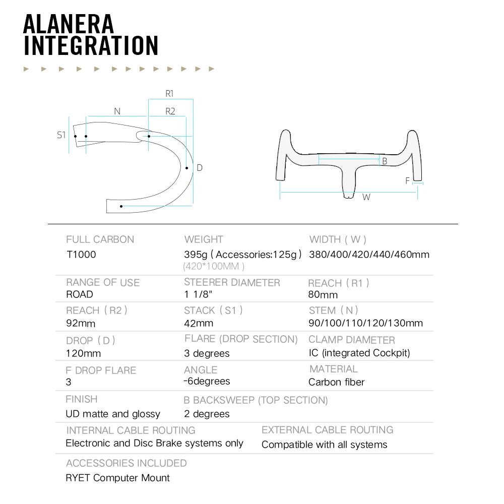 The Ryet MISSION Full Carbon Road Integrated Handlebar redefines what it means to ride with efficiency and speed. Designed for gravel and road racers, it features a full-carbon construction that strikes the ideal balance between lightweight performance and long-lasting durability. Its integrated design optimizes aerodynamics, delivering smoother airflow and reducing drag, so you can maintain peak performance even in high-speed conditions. Whether on flat roads or challenging gravel paths, this handlebar is your ally for maximized riding precision.