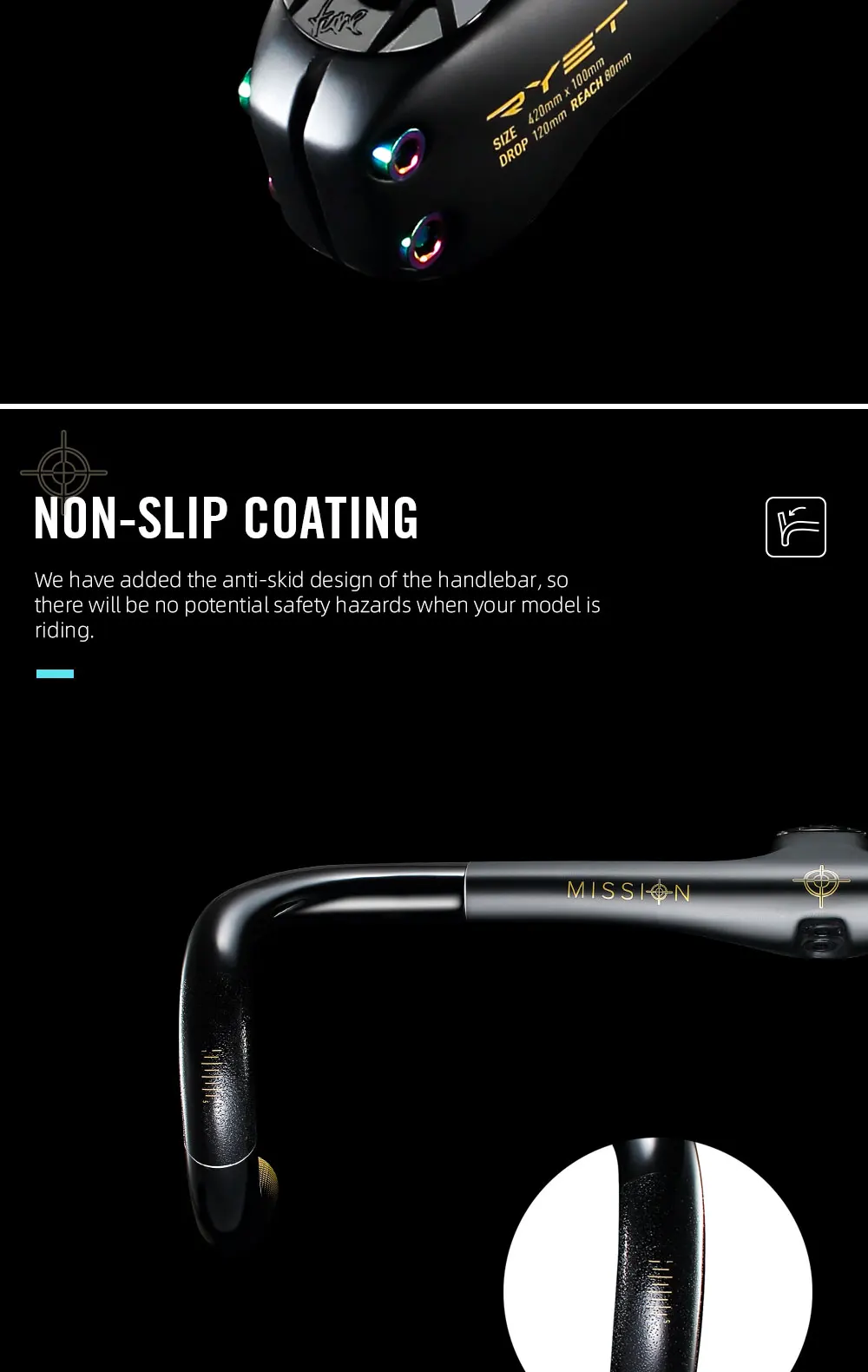 The Ryet MISSION handlebar seamlessly bridges the gap between road and gravel cycling disciplines. Its ergonomic bent shape offers superior control over any terrain, allowing you to tackle sharp descents, gravel trails, or high-speed road sections with ease. The 28.6mm diameter ensures compatibility with a wide range of stems, while the handlebar’s geometry delivers comfort and stability during intense rides. Whether you’re racing, bikepacking, or training for an endurance event, this handlebar adapts to your needs across every mile.