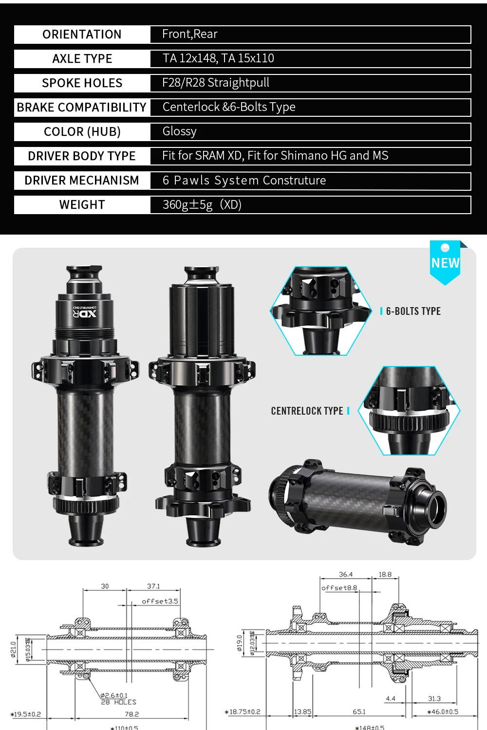 The RYET MTB Hub Carbon Bicycle Mountain Bike Hubset is expertly crafted to revolutionize your mountain biking adventures. Its cutting-edge 6-pawl system offers unparalleled quick engagement, ensuring responsive power transfer with every pedal stroke. With high-grade materials and an aerodynamic design, this hubset guarantees reliability on even the toughest trails. Boasting a unique blend of durability and precision, it’s the ultimate companion for riders who refuse to compromise on performance.