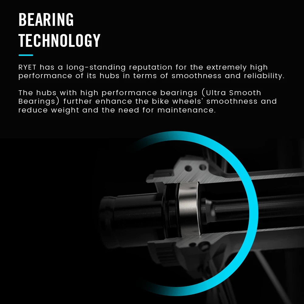 The glossy black finish of the RYET hubset doubles as a reflection of both style and sophistication. Its straightforward yet functional design blends effortlessly with most bike frames, adding an elegant touch to your setup. Built with aerodynamic principles in mind, it minimizes drag while elevating your ride performance. Moreover, its center-lock disc brake compatibility ensures enhanced braking stability even during sudden stops, improving control and safety.
