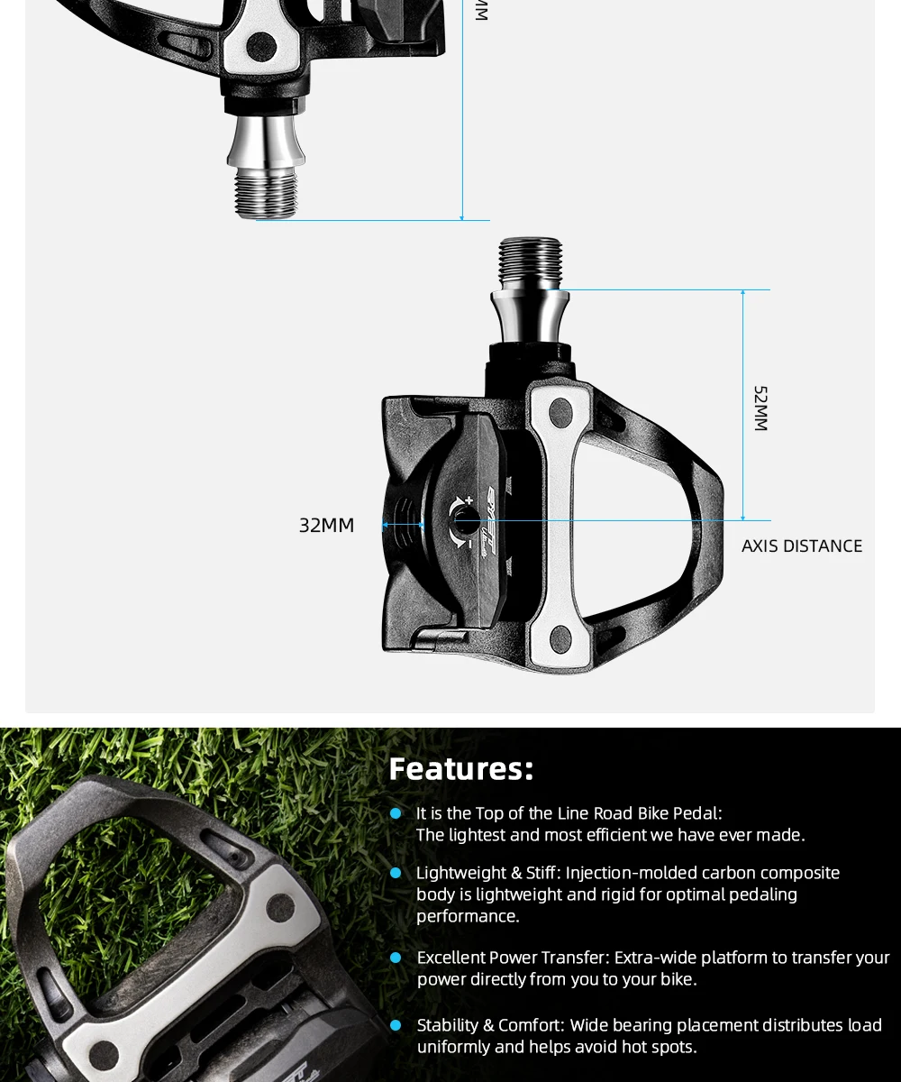 Experience a new level of cycling excellence with the RYET P-601S Carbon Road Bike Pedal. Weighing in at just 218 grams, this ultralight clipless pedal revolutionizes the way you ride. Crafted from premium carbon, it offers both durability and performance enhancements unlike any other pedal on the market. Transition seamlessly from casual rides to competitive racing while enjoying maximum power transfer and control with every stroke. You’ll feel the difference with each rotation, propelling you forward with unmatched efficiency.