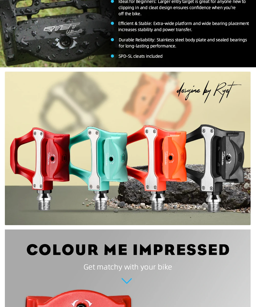 Compatibility plays a crucial role in choosing the right pedals. The RYET PD-601 is engineered to work flawlessly with the SPD-SL system, making it an indispensable part of your biking setup. This compatibility guarantees a secure connection with your cycling shoes, allowing for confident power transfers during every ride. The precision-engineered cleats enhance grip and stability, ensuring you stay connected when it matters most. With effortless engagement and disengagement, you will experience unmatched convenience, even in high-pressure situations.