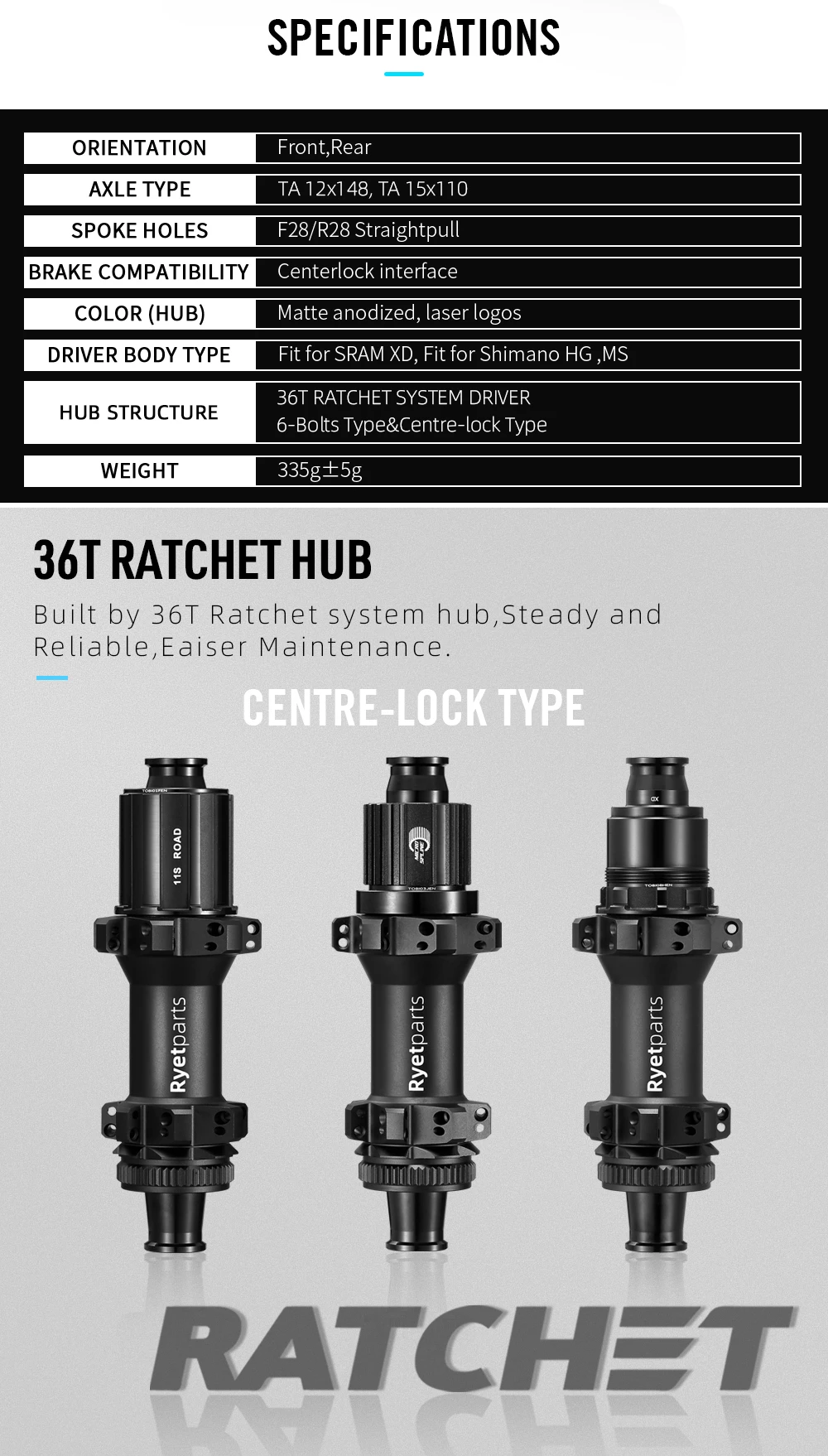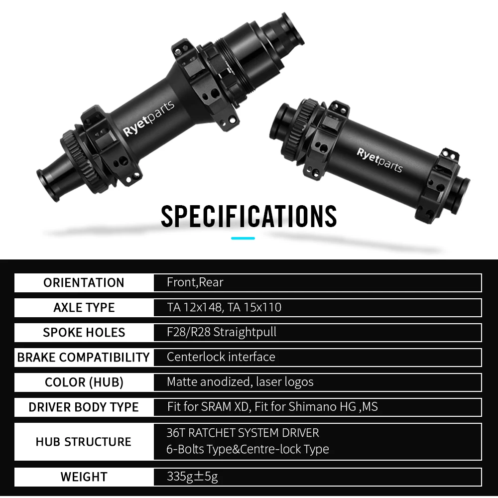 The RYET Ratchet 36T MTB Hub achieves ultralight performance through its minimalist 28-hole bushing design, reducing rotational mass without sacrificing lateral stiffness required for aggressive trail work. The straightpull spoke architecture eliminates stress concentration at the spoke nipple interface, extending wheel life across rocky and root-laden terrain. BOOST 148 spacing aligns with current industry standards, fitting seamlessly into modern frame designs without adapter components. The 36-tooth ratchet system engages on every pedal stroke, delivering immediate power transfer and dependable acceleration during climbing or sprinting efforts. HG and XD freehub bodies accommodate both Shimano and SRAM cassettes, providing flexibility for riders switching between drivetrain manufacturers.