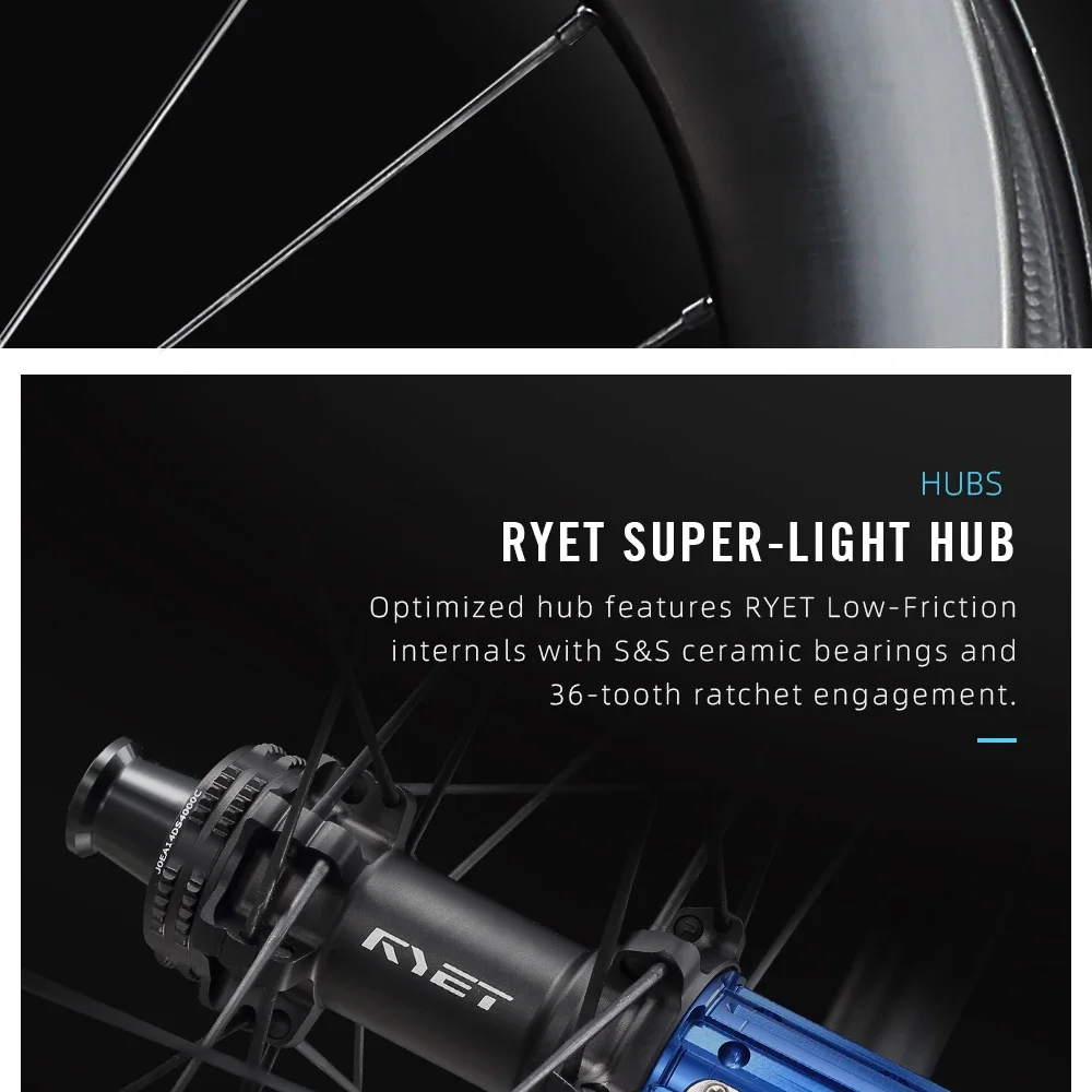 Every second counts. The RYET Ultralight 1180g Road Carbon Bicycle Wheels set themselves apart with a precision 36T ratchet hub system. Instant engagement translates your energy into forward motion with lightning speed. Other systems may let you down in races—this one gives you the confidence for rapid acceleration, tight corners, and powerful climbs. Enjoy the balanced blend of strength and lightweight design, experiencing what dedication to detail feels like, mile after mile. Transform every ride and trust your gear to always be race-ready.