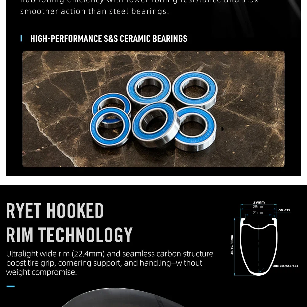 Let’s talk about confidence on every road and in every condition. The RYET wheels come with full disc brake compatibility, allowing you to ride with unmatched stopping power. Rain or shine, descents feel secure, because you have superior braking at your fingertips. Compared to traditional rim brakes, this feature minimizes your risks and maximizes safety. No matter if you’re weaving through urban streets or tackling steep, winding roads, these wheels offer uncompromised control. When performance matters, control inspires even more daring rides.