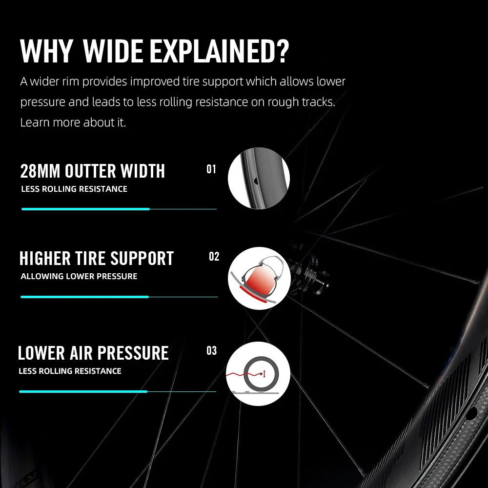 Step into a new era of biking with the RYET Ultralight 1180g Road Carbon Bicycle Wheels. At just 1180 grams, these wheels redefine the meaning of lightweight without compromising strength. While many cyclists chase lower weights, you actually achieve it and feel the difference with every acceleration. Because every gram matters, the advanced carbon fiber construction ensures swift responsiveness and nimble climbing. As a result, your energy transfer becomes incredibly efficient, propelling you forward with each pedal stroke. Whether you’re sprinting to the finish or coasting over mountains, these wheels change your riding experience.