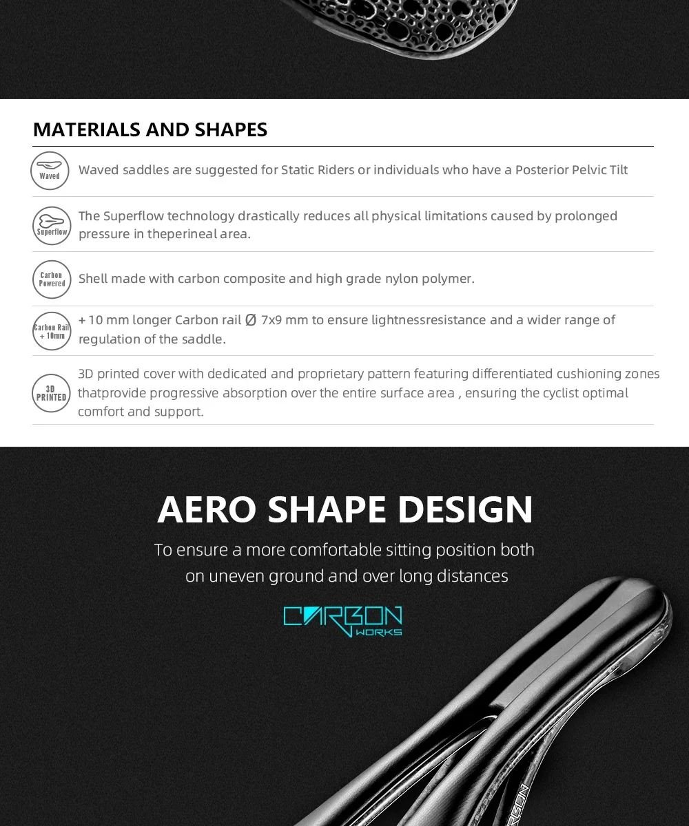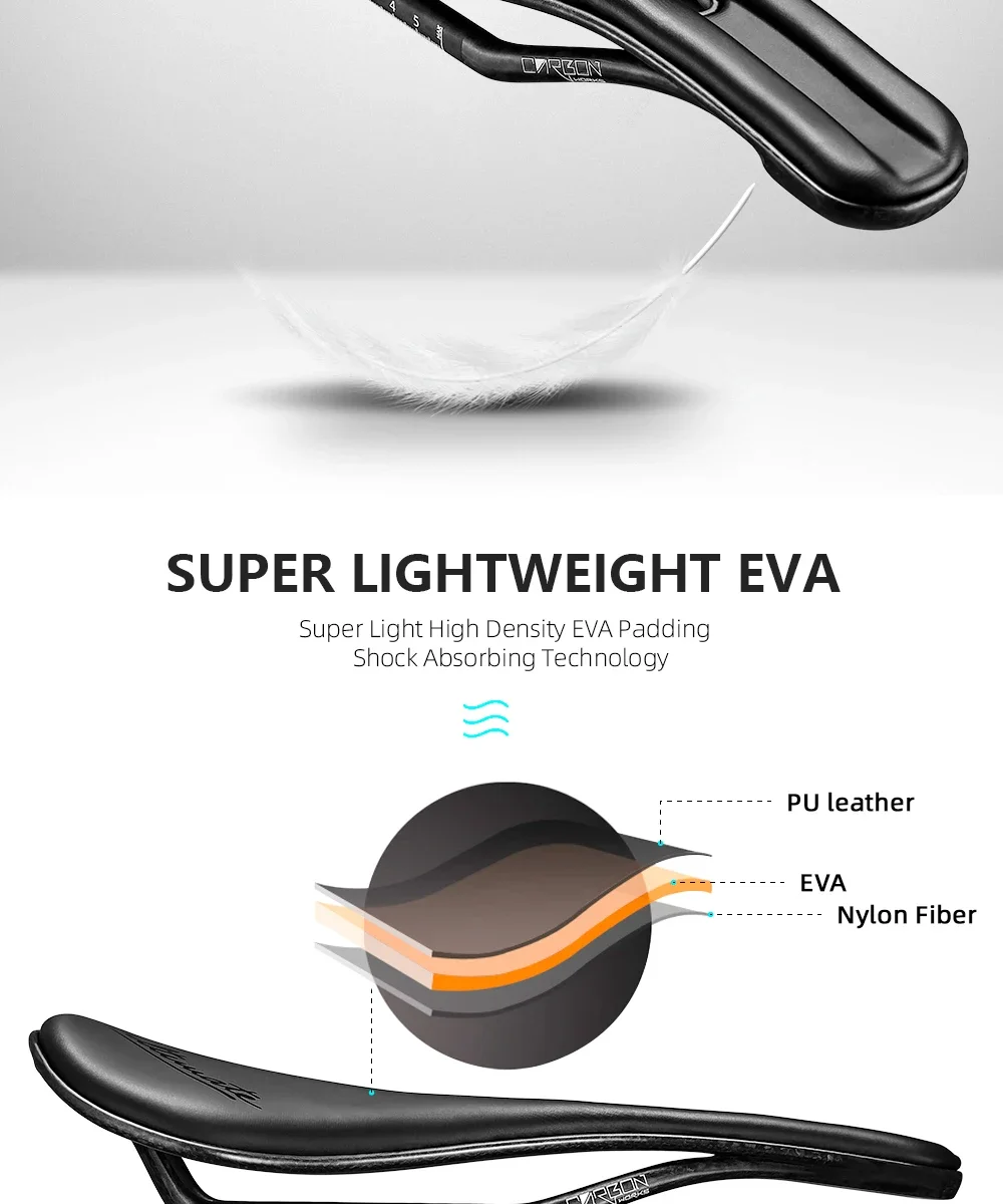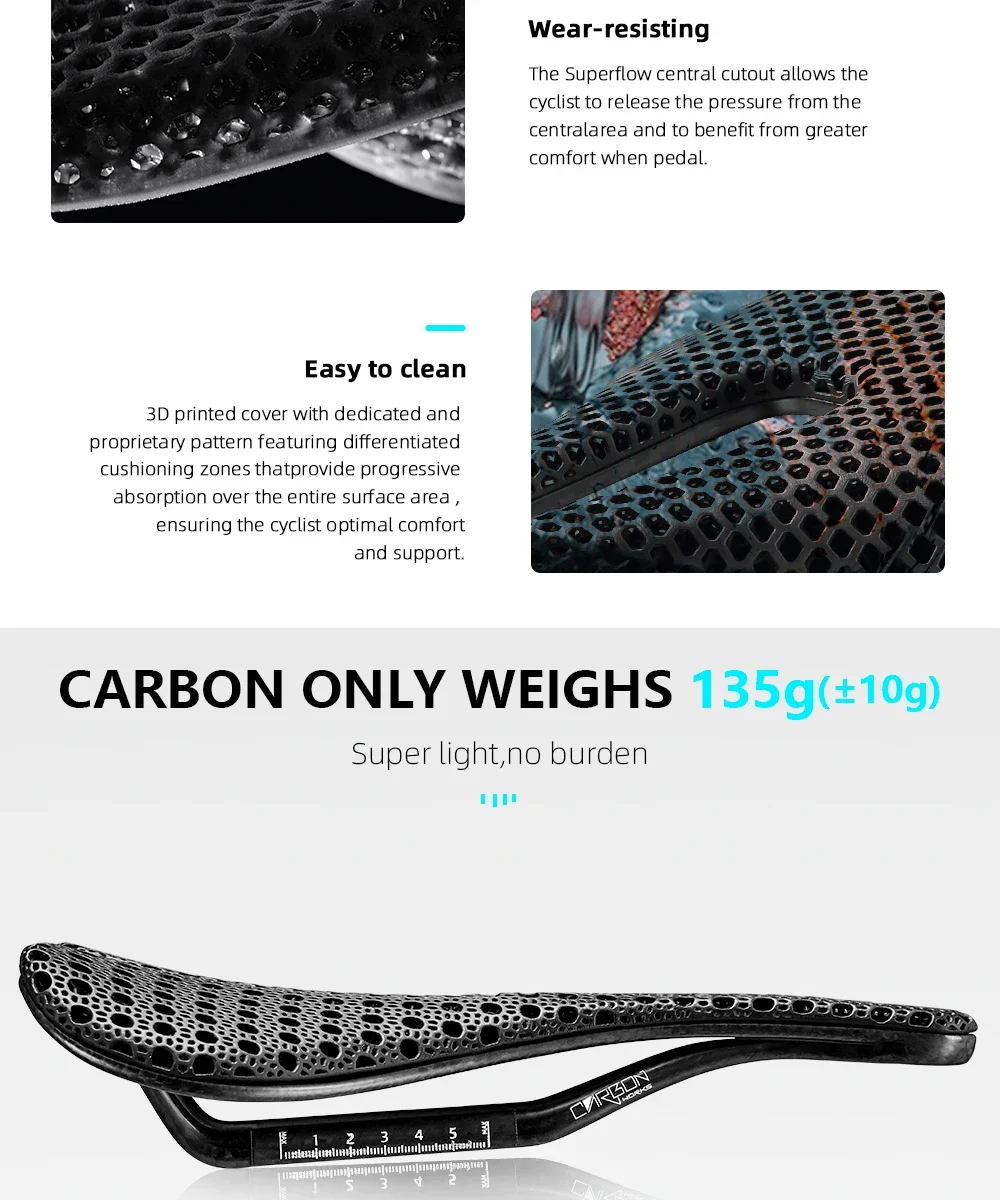 The advanced 3D printing technology integrates seamlessly with the carbon fiber chassis, allowing precision placement of EVA cushioning where your body needs it most. This 140MM design fits standard seat posts across road, mountain bike, and gravel platforms, making it a versatile upgrade for multiple bikes. The lightweight construction sheds unnecessary weight without compromising durability or comfort during extended riding sessions. Carbon fiber layering provides rigidity that prevents flex under aggressive power transfers, while the 7×9 internal structure maximizes breathability and reduces moisture buildup. Triathlon-specific geometry keeps you aerodynamic without sacrificing the seated power position needed on long climbs.