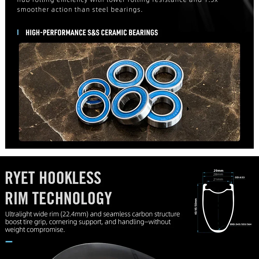 Embrace the future of cycling with a wheelset designed for disc brakes from the start. You get consistent, powerful stopping power in every weather condition, whether you’re racing or commuting. RYET 1180g Super Light Road Carbon Wheels deliver premium quality and reliability in every detail, letting you focus on your ride instead of worrying about your equipment. With the sleek, aerodynamic profile and elegant finish, your bike not only rides better but looks exceptional wherever your journey leads.