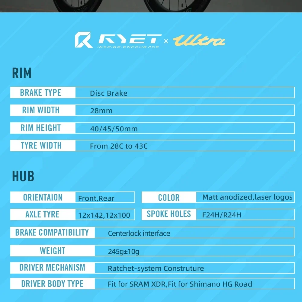 Experience road cycling like never before with the RYET Disc Brake 1180g Super Light Road Carbon Wheels. Every cyclist knows the difference a few hundred grams can make. Feel the acceleration as these ultra-lightweight wheels launch you forward on climbs and flats alike. Thanks to their precise carbon construction, you’ll glide over roads with a lively response, enjoying stiffness without sacrificing comfort. Riders chasing podiums or adventure seekers exploring new distances will both benefit from the unmatched performance and dynamism.